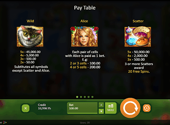 Данная слот-машина считается идеальным инструментом для заработка в сети интернет. Ведь в ней посетителям онлайн казино предоставлены все козыри, чтобы удачно играть на деньги. В игровом автомате Alice In Wonderland присутствуют дикие символы, удвоение призовой суммы, а также бонусные розыгрыши, которые удастся получить после выпадения на экране всего двух картинок с магическими предметами.